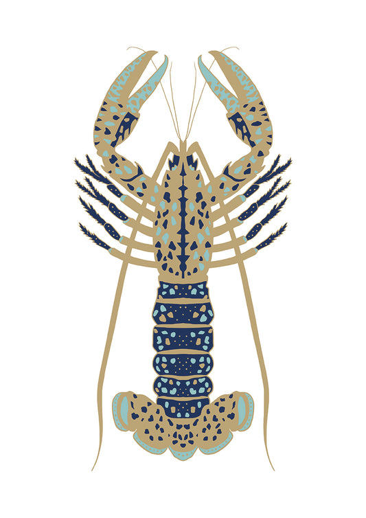 Coastal Chic Lobster Illustration A4 - Gold/Navy/Seawater Blue