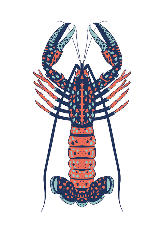 Coastal Chic Lobster Illustration A4 - Coral/Navy/Seawater Blue