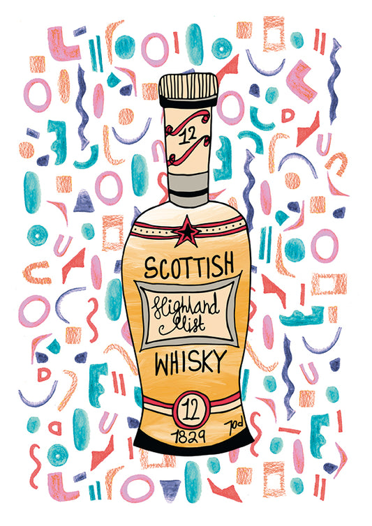 Scottish Single Malt Whisky Bottle Illustration - A4