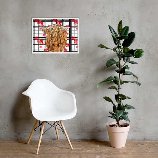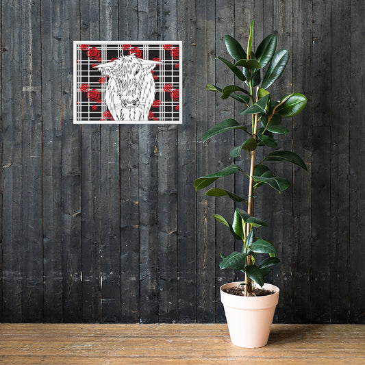 Highland Cow Mackintosh Rose Check Framed Art Print - White
