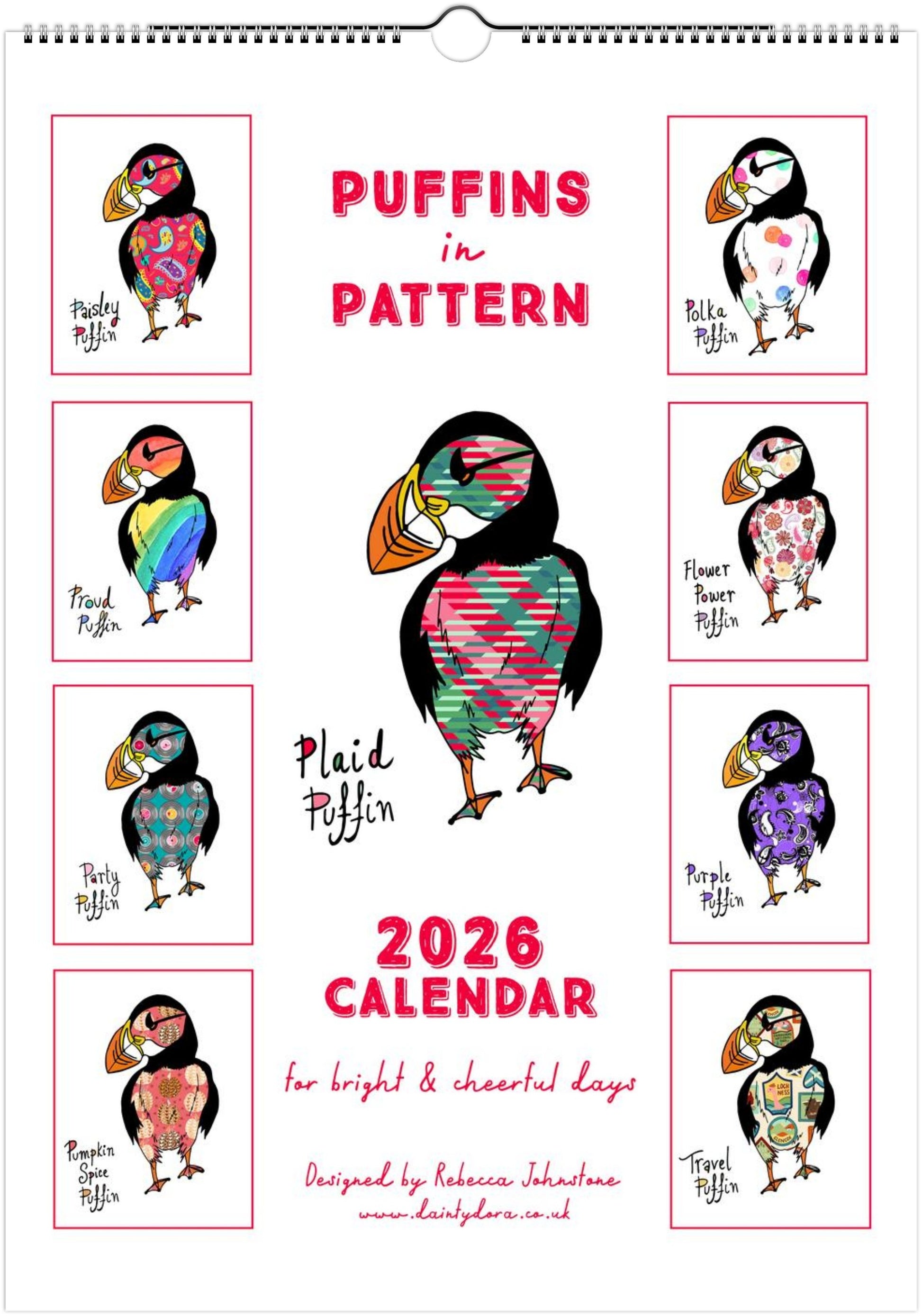 Puffins in Pattern 2026 Art Wall Calendar - Multiple Sizes