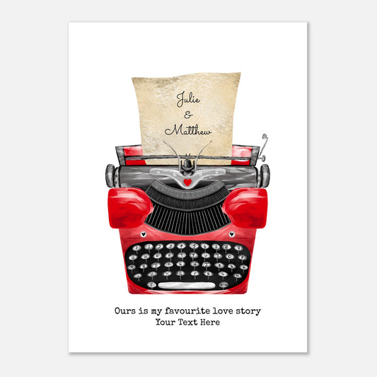 Personalised Red Typewriter Fine Art Print – Romantic Gift for Couples