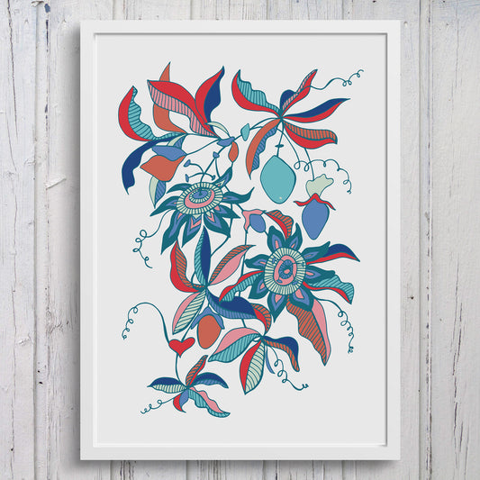 Passionflower 'Passiflora' Stylised Floral Art Print - Mid-Century Vibes - A4