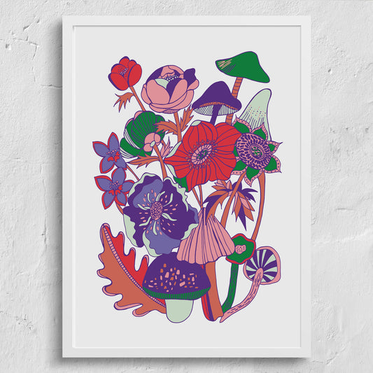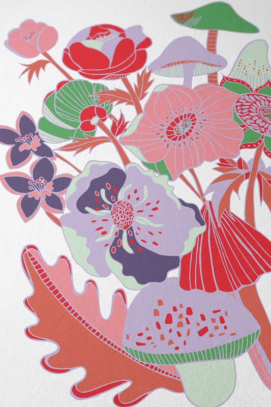 Toadstool Flora & Fauna Stylised Art Print - Vibrant Maximalist - A4