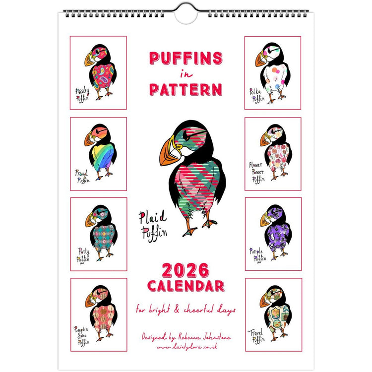 Puffins in Pattern 2026 Art Wall Calendar - Multiple Sizes