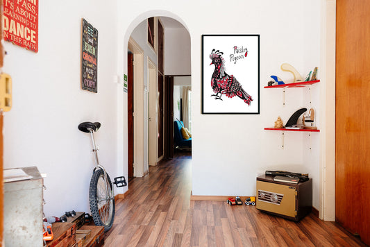 PAISLEY PIGEON A4 illustration - Red/Pink/Black