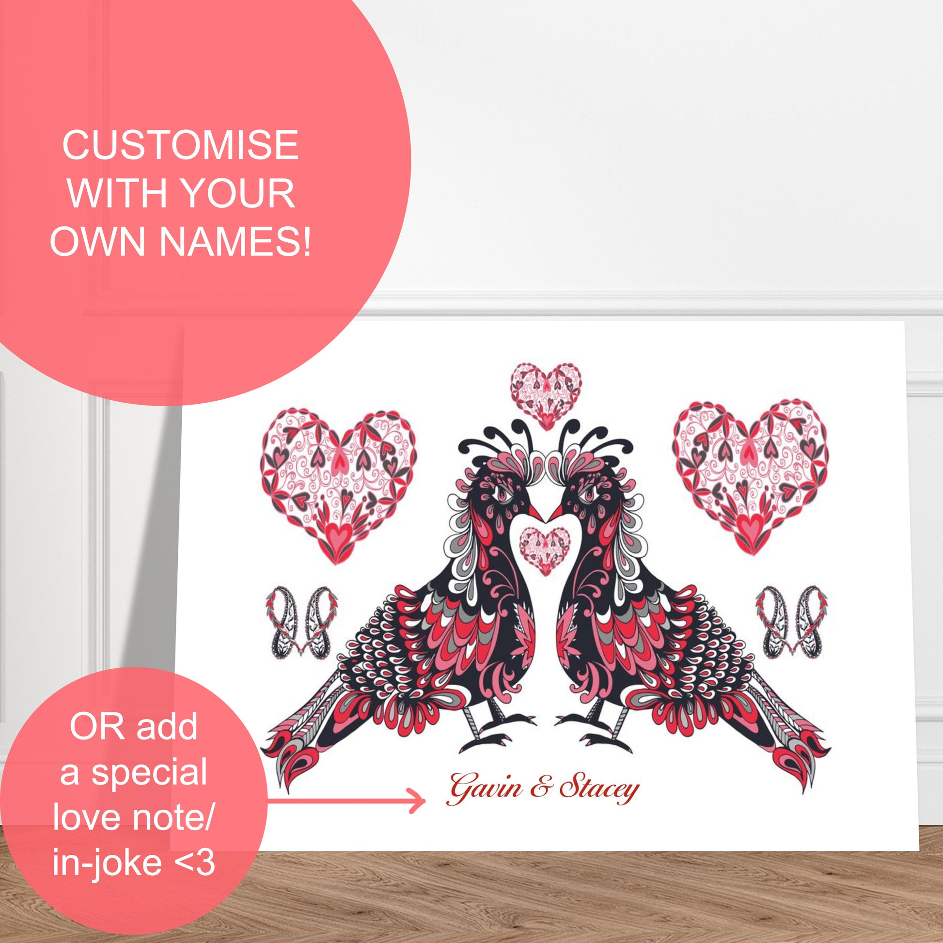 - Customise: this art with your own names, message, in-joke or love-note to really make it personal <3